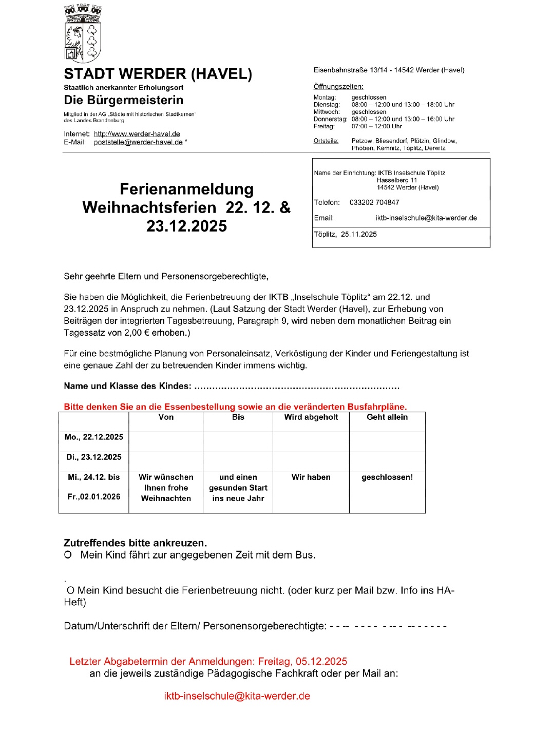 Bekanntmachung: Schulanmeldung für das Schuljahr 2026/2027 [75 KB]